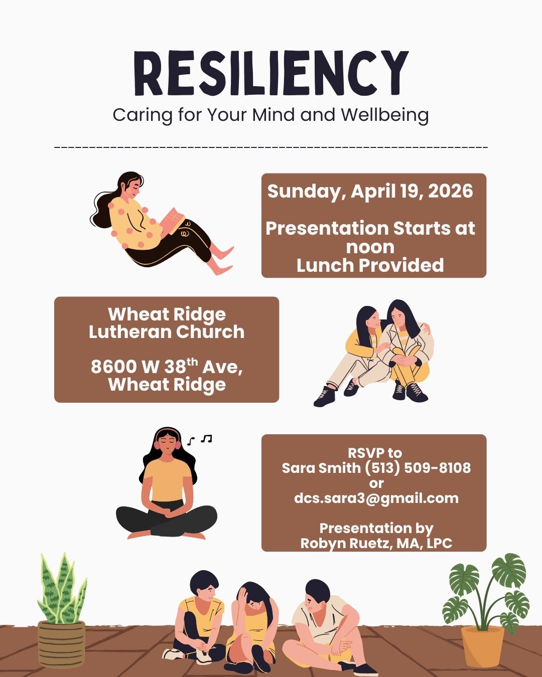 Our next Mental Health Presentation, “Resiliency: Caring for Your Mind and Wellbeing” is on Sunday, April 19 at noon. Lunch will be around 11:30 am. This is open to all.